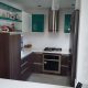 Tonlidades cremas en formica brillante de alto calibre con superficie café en granito que se prolonga hasta el mueble superior dndole el salpicader alto