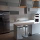 Modelo de cocina moderno, facil de limpiar y con toques en vidrio en puertas superiores.